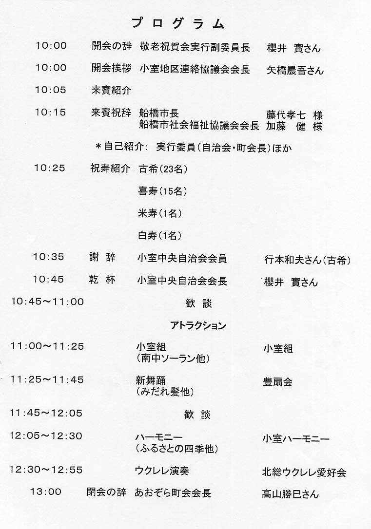 小室地区敬老祝賀会