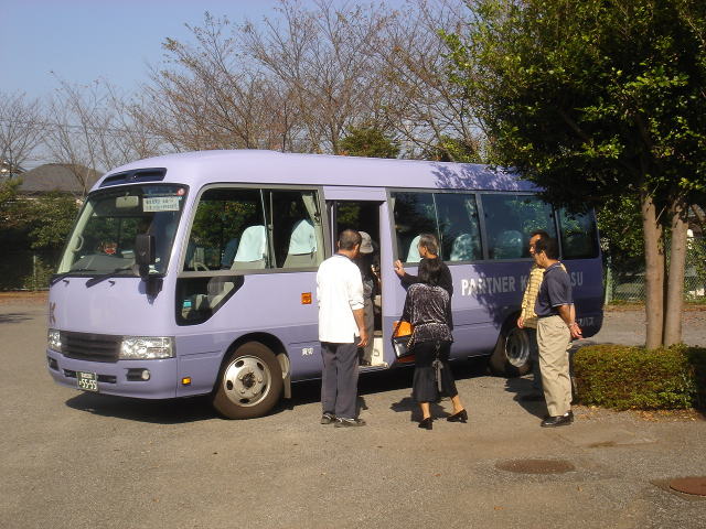 送迎バスの一便が到着、